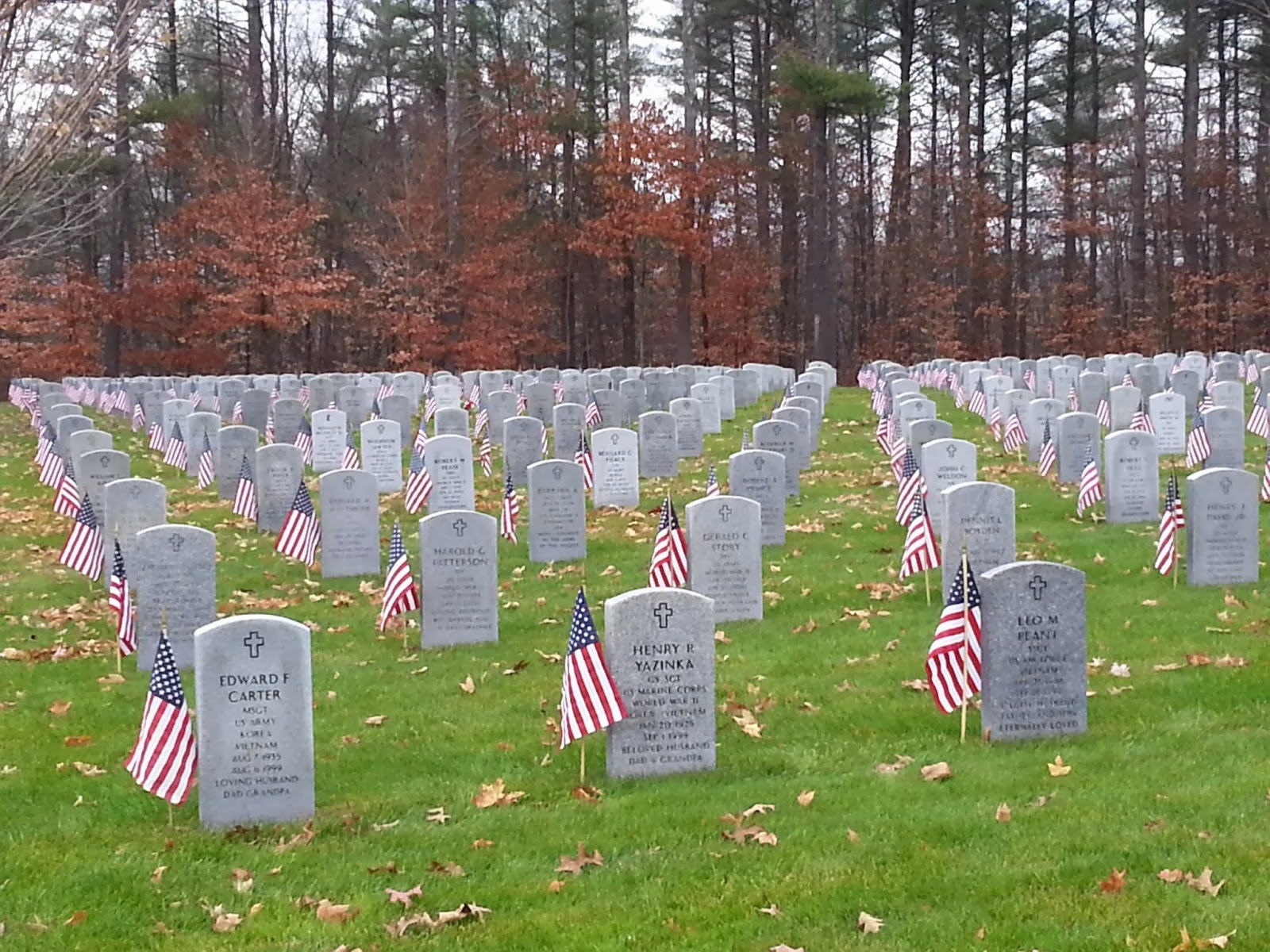 Flags are out at the beautiful, serene, touching, reflective, awesome, perspective-enabling NH State Veterans Cemetery. Visited Dad there yesterday. Great thanks to him, all of our current military, their families, and to all of our veterans and fallen heroes.